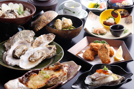 特典かきが苦手な方は、新鮮な海の幸と郷土色豊かな「いかだ会席の選択も頂けます。申込時に料理を選択してください。