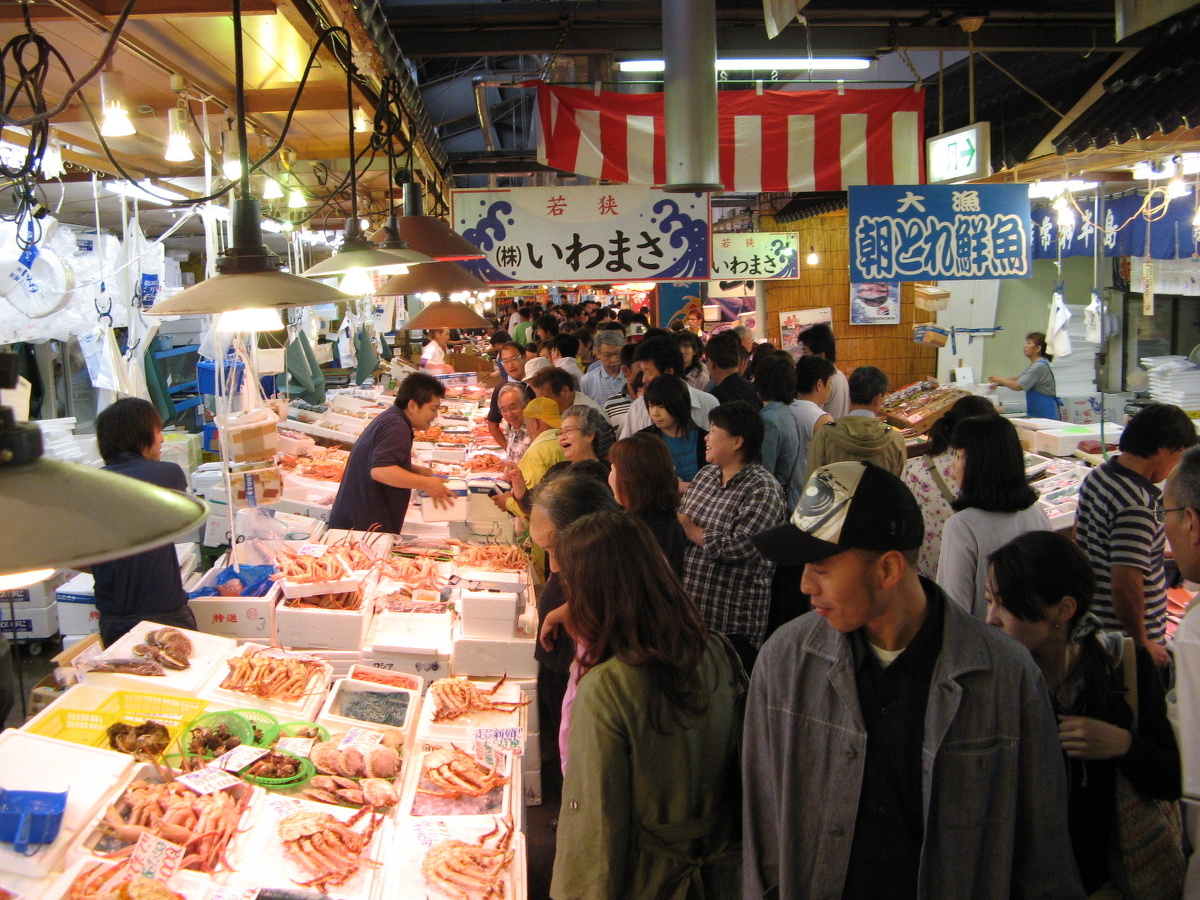 各地(7:00~7:50)=小牧かまぼこ(お買物)=日本海さかな街(1,000円分のミールクーポンを利用して自由昼食とお買物:滞在約2時間)