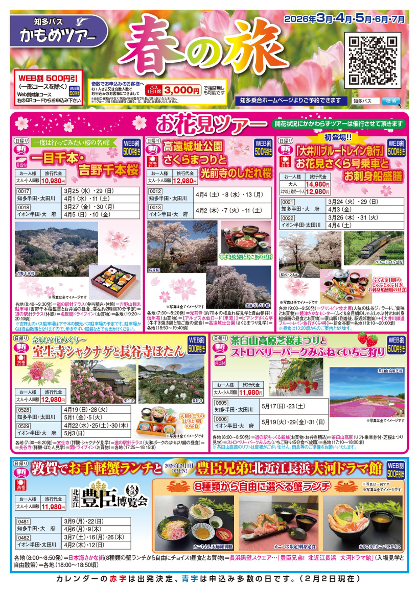 春らしいお花見ツアーをメインに新コースはハイキングを含めて10コース!