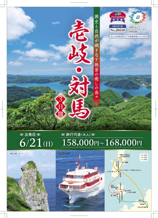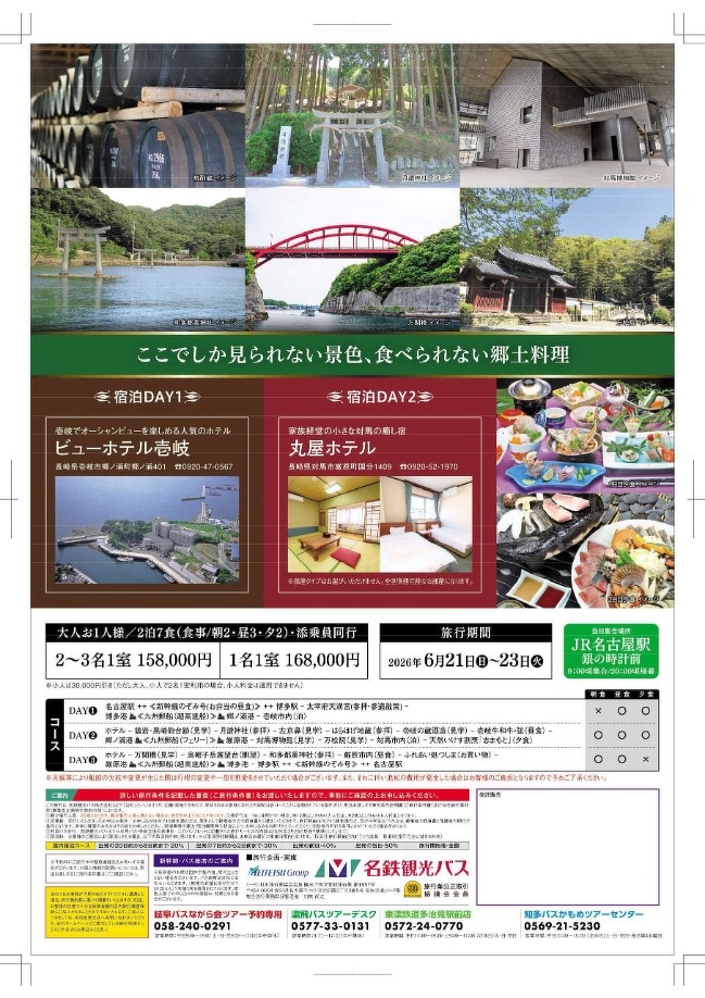 2026/04/27NEWかもめツアー 【名鉄グループバスHD共同企画】「紀伊・対馬3日間」ツアーを発売します。 詳細や予約は、かもめツアーセンター(0569-21-5230)または、名鉄観光バスホームページをご覧ください。